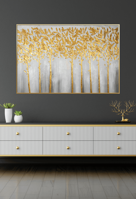 HP025 Minimalist Gold Trees Hand-Painted Wall Decor