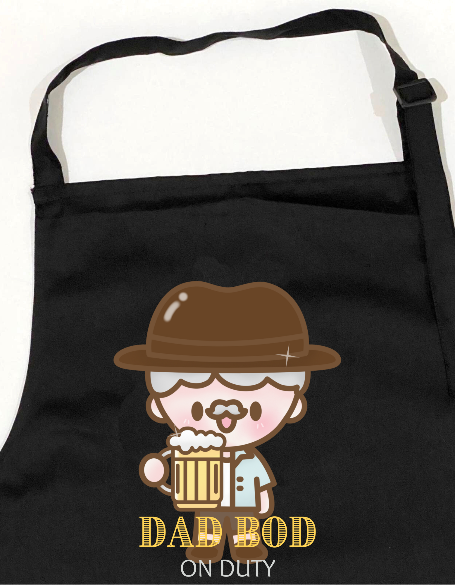 Celebrate the amazing dad in your life with our fun and practical "Dad Bod on Duty" Apron. Perfect for cooking, grilling, or just having fun in the kitchen, this apron, made with canvas fabric makes a great gift that he'll love to wear. The apron features the witty slogan "Dad Bod on Duty," adding a touch of humor and personality to his cooking or grilling sessions.