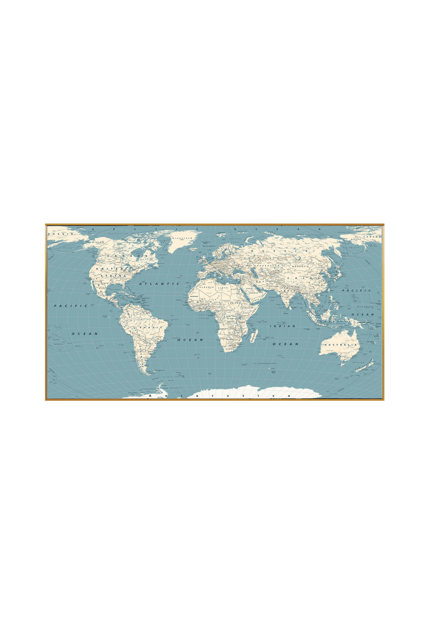 Introducing a captivating world map canvas print set against a serene blue background. This artwork features a detailed world map design, elegantly rendered with blue hues that evoke a sense of exploration and global perspective.