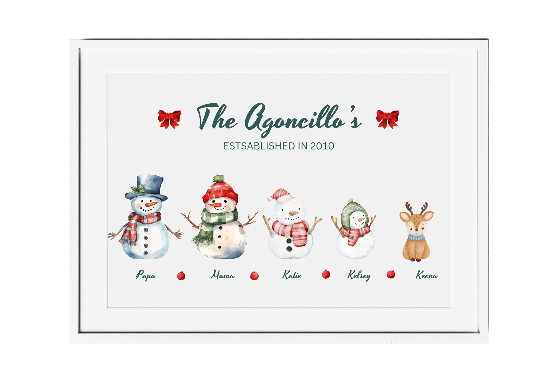 Embrace the magic of the season with our Customizable Snowman Family Poster. Featuring adorable snowmen to represent each family member, this delightful poster can be personalized with names or any other text. Perfect for adding a festive touch to your home decor, this unique poster celebrates your family's holiday spirit in a fun and heartwarming way.
