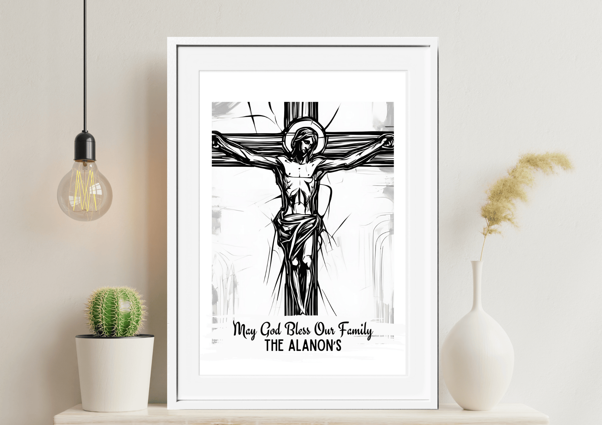 Personalized Jesus on the Cross Pencil Sketch-Effect Wall Art