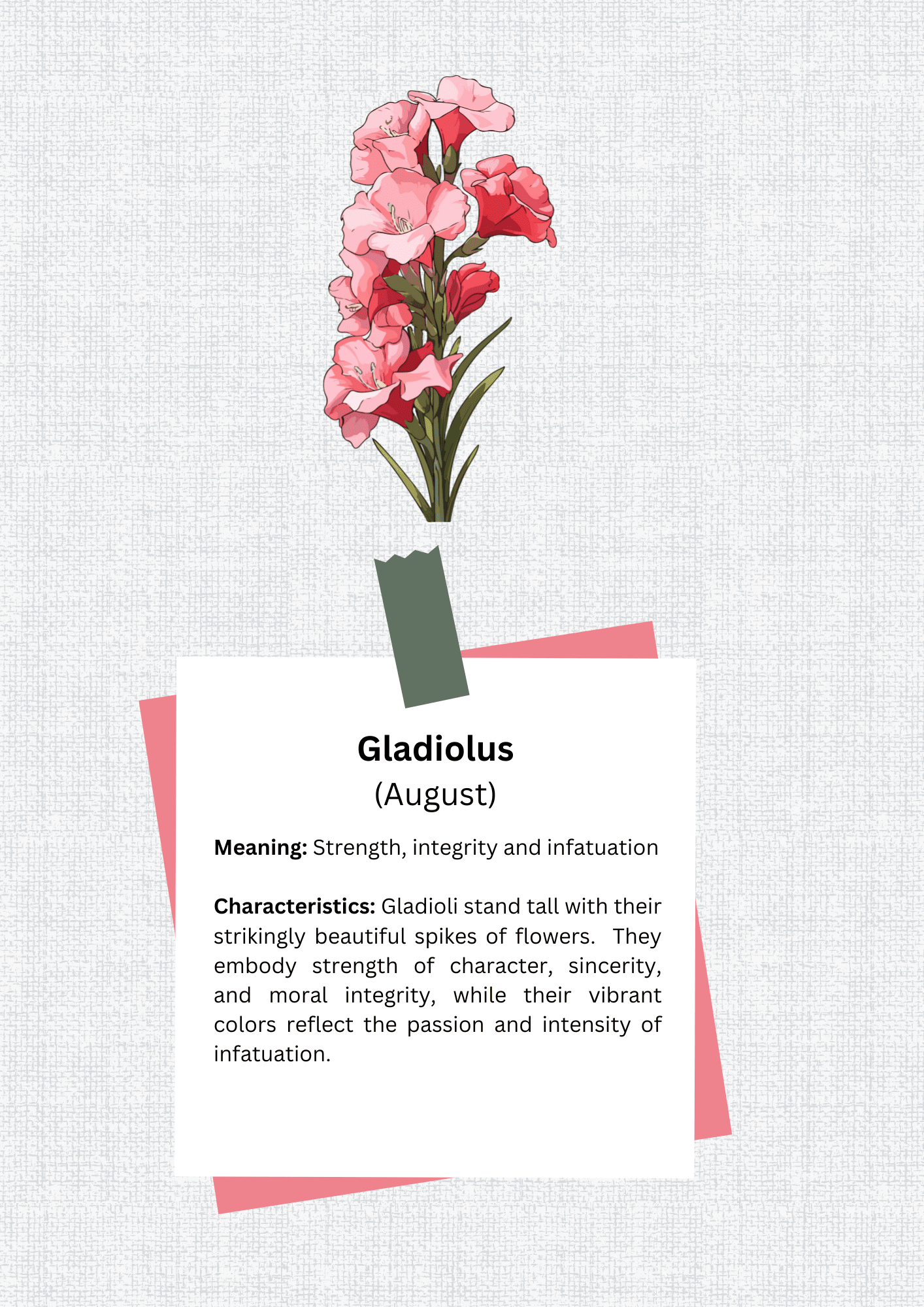 Adorned with a beautifully printed Gladiolus, representing August, and customizable with the recipient's name, this tote bag adds a unique and personal touch to everyday use.