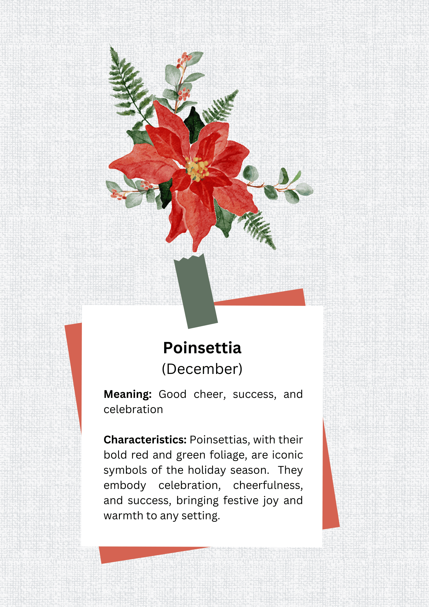 Adorned with a beautifully printed Poinsettia, symbolizing December, and customizable with the recipient's name, this tote bag adds a unique and festive touch to everyday use.