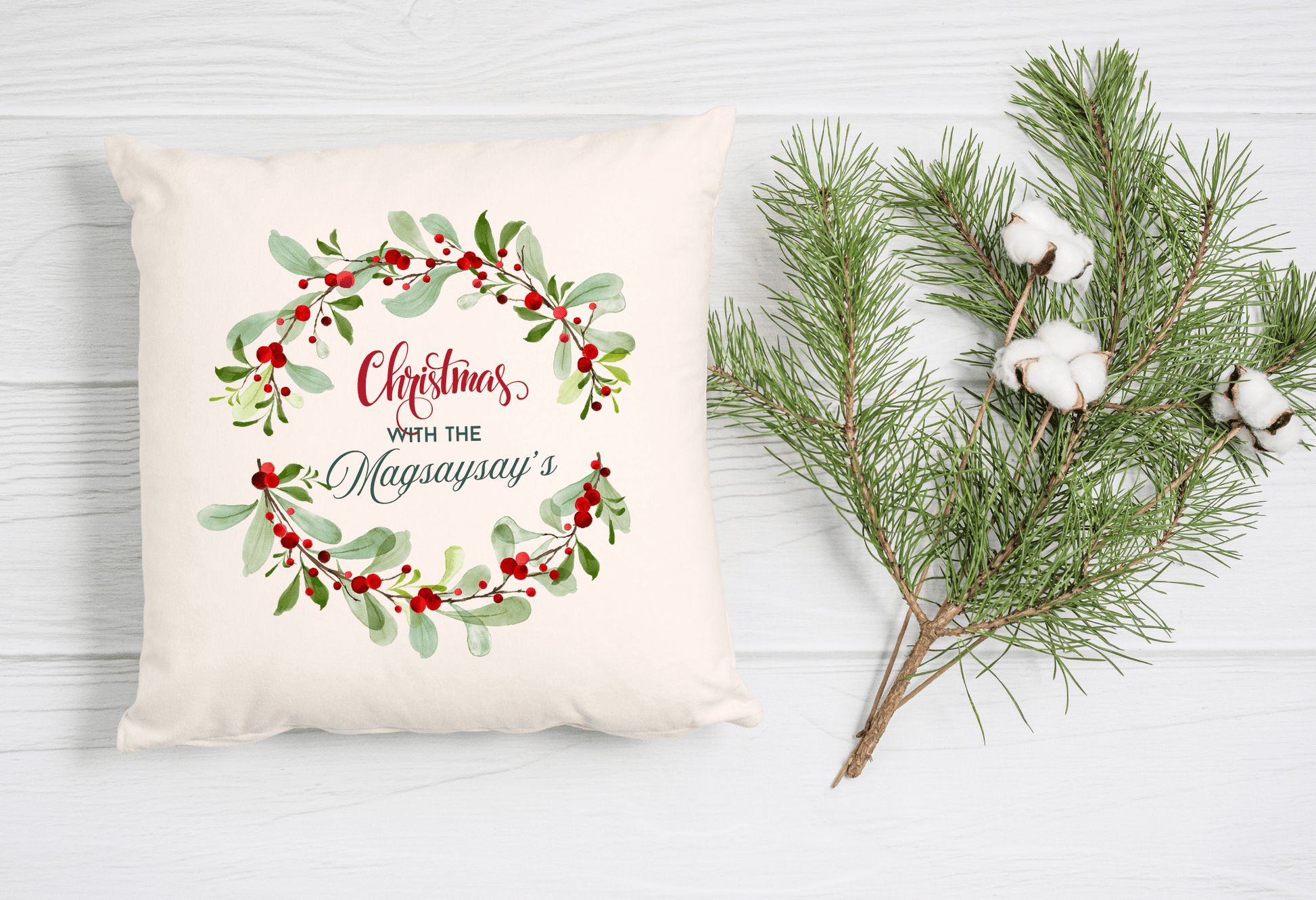 Personalized Christmas Wreath Cushion Cover (Pillow Insert Not Included)