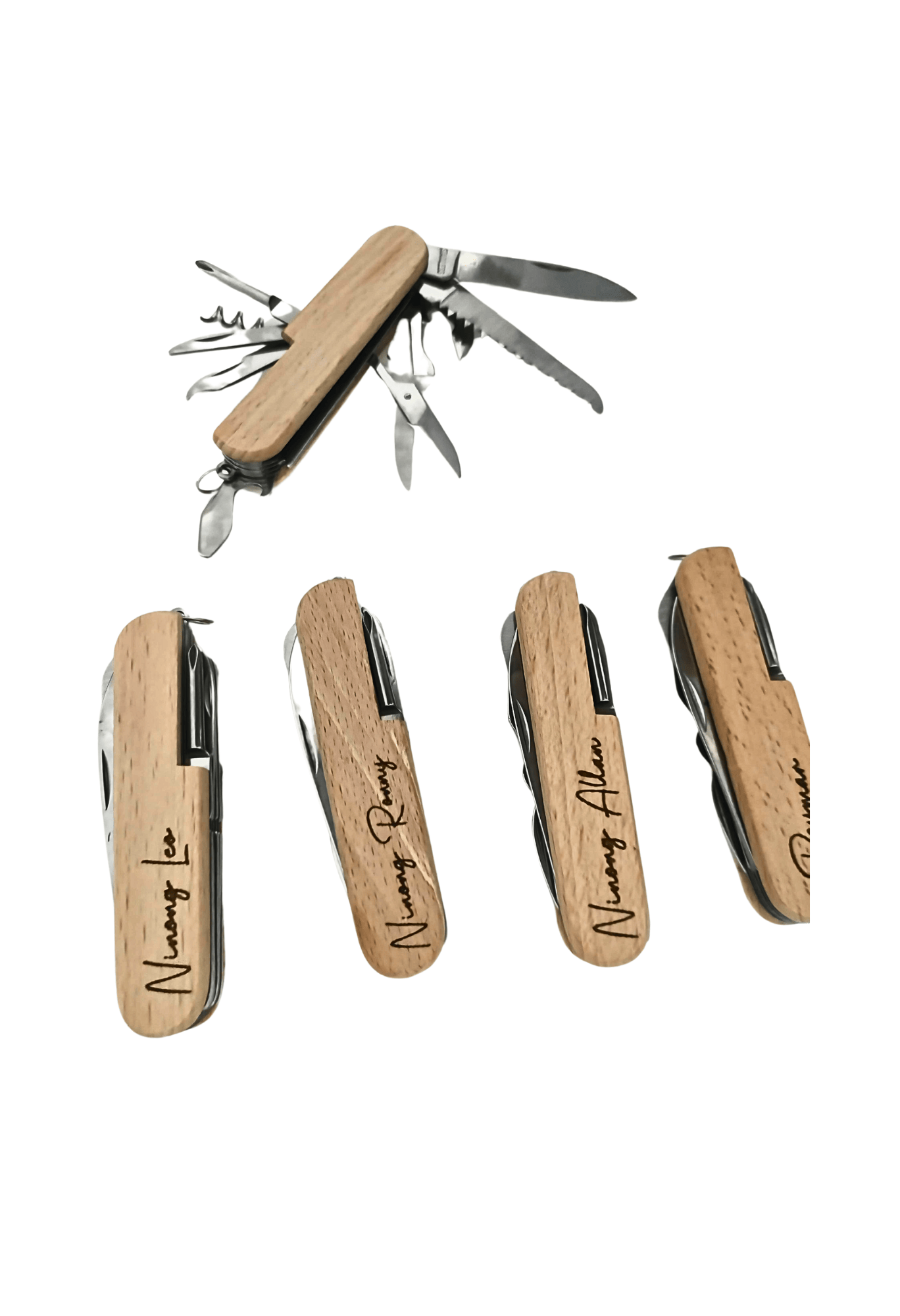 Give the gift of versatility and craftsmanship with our Personalized Multifunctional Tool Swiss Knife featuring a wooden handle. Perfect for adventurers, DIY enthusiasts, and anyone who appreciates practical elegance, this Swiss knife is both a handy companion and a thoughtful present.