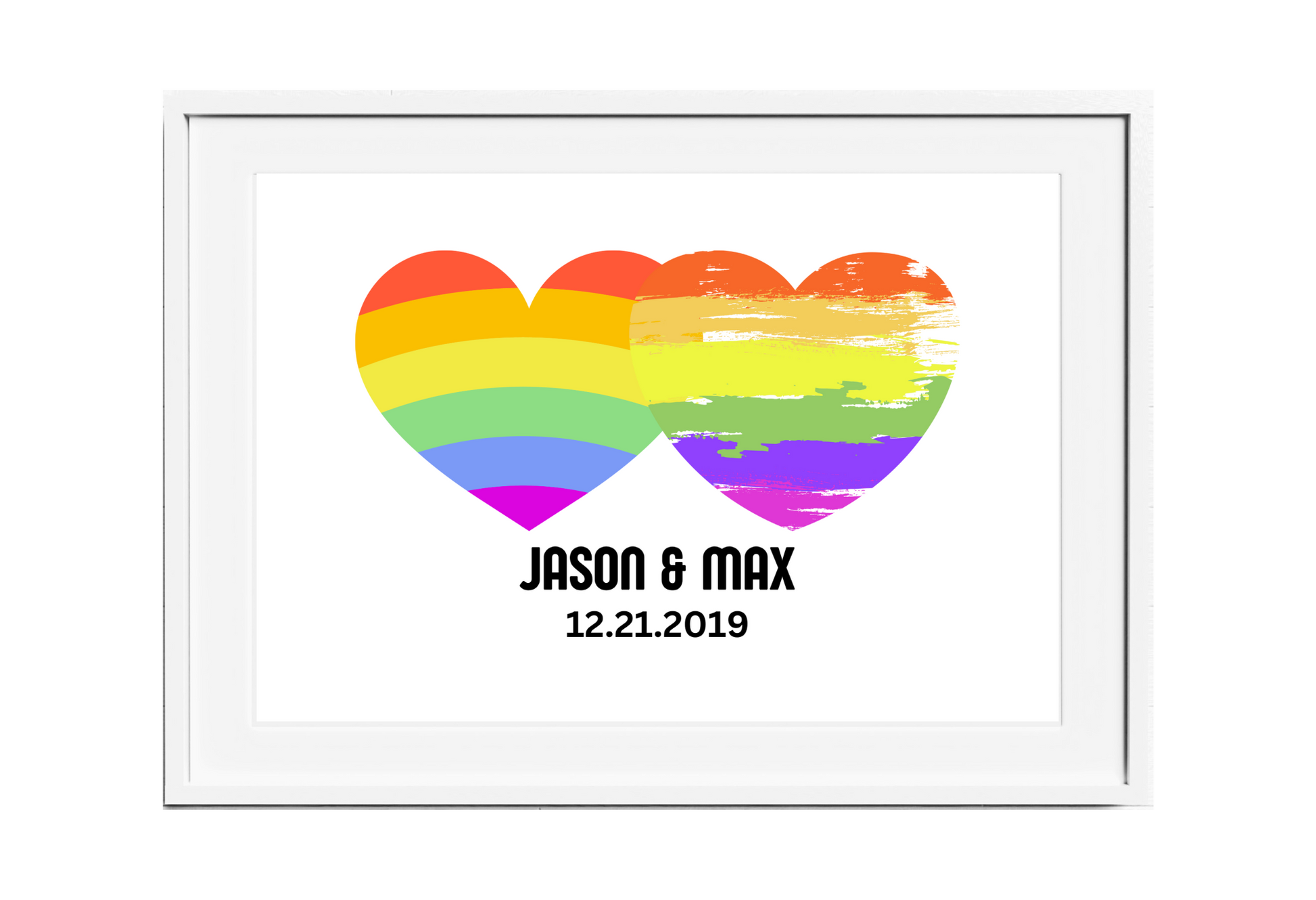 Celebrate your love and pride with our Personalized Framed Poster, featuring two rainbow hearts beautifully intertwined, symbolizing your unique and cherished bond.